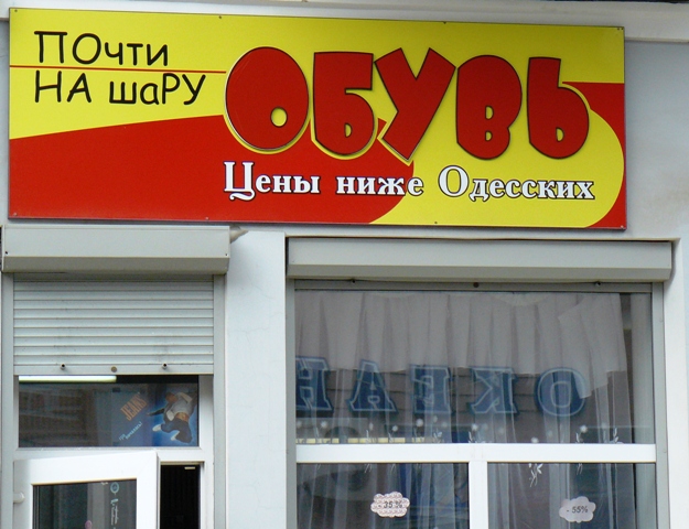 «Обувь – почти на шару. Цены ниже одесских». Я не знаю, что там у них за обувь, и какие сегодня цены в городе – герое Одессы, но реклама цепляет. Не то, что ЭТА, на набережной имени Терешковой.