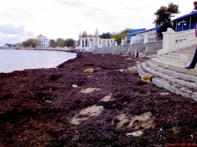Еще три дня назад она толстым слоем закрывала морской песок, а сегодня остались лишь маленькие черные пятна.