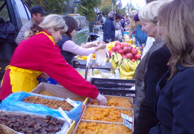 Ярмарка ценыНакануне выборов в Верховную Раду Украины «Крымский аналитик» начинает фото мониторинг розничных цен на продукты питания в Крыму. Для того чтобы получить реальные, а не приукрашенные данные,  журналисты «Крымского аналитика» будут собирать информацию о  ярмарочных ценах  в Симферополе, Севастополе, Евпатории и других городах полуострова. Мы считаем, что на ярмарках складываются реальные цены на овощи, фрукты и продукты питания в городах Крыма. Причем  публиковать  на сайте «Крымский аналитик» будем исключительно фотодокументы, которые позволят не только узнать цены, скажем, на яблоки или помидоры, но и увидеть своими глазами сам товар, который продается по данной цене. Такой подход к проведению мониторинга даст  возможность  жителям  ближнего и дальнего зарубежья сравнить цены на  фрукты, овощи, и продукты питания,  с ценами  на аналогичный товар в других регионах. Первой, фото мониторингу цен на фрукты, овощи и продукты питания подверглась 25 октября 2008 года многоотраслевая  ярмарка в Евпатории «Золотая осень».