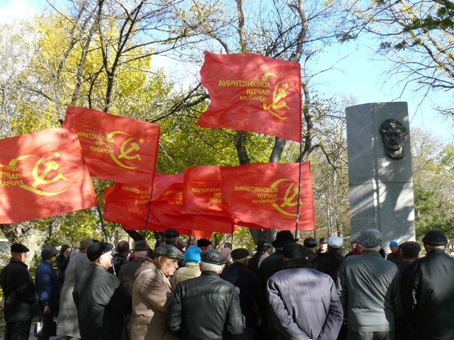 Евпатория 7 ноября 2008Впервые в истории Евпатории и Крыма демонстрация в честь очередной годовщины Великой октябрьской революции прошла под партийным знаменем КПРФ. Один из соратников вождя российских коммунистов на митинге,проходившем недалеко от  стен евпаторийского горисполкома, не только передал привет  евпаторийцам  от Геннадия Зюганова, но и призвал жителей Крыма объединиться вокруг компартии Украины в борьбе за свои права. Участники митинга аплодисментами и криками «УРА!» поддержали российского  коммуниста и его украинских коллег, выслушали гимн Советского Союза в исполнении духового оркестра под управлением 79 - летнего дирижера  Михаила Пиастро и возложили живые цветы к памятнику Ленину в Ленинском сквере.  Отдав дань уважения вождю мирового пролетариата,поклонники коммунистической идеи прошли по улицам Евпатории к памятникам «Погибших коммунаров» и замученному белогвардейцами во время гражданской войны революционеру Давиду Караеву.