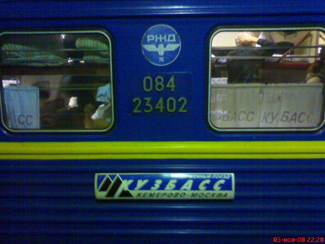А вот поезд "Москва-Кемерово". Давайте сравним, в каких поездах из Москвы отправляют туристов в Крым и Сибирь. Кстати, это тоже был плацкартный вагон, в котором оказались застелены постели, а электронное табло на стене информировало пассажиров о температуре воздуха на улице и прочих нужных вещах. Об этом вагоне еще много чего можно написать, но не будем больше травмировать души крымско-московских пассажиров. Напомним только то, что поезд "Кузбасс" - российский, а поезд "Москва-Евпатория" - украинский.