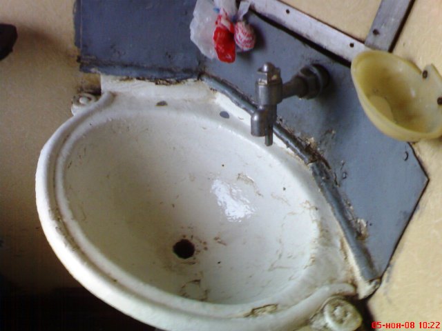 Здесь можно почистить зубы, если не стошнит. А это железнодорожный горшок (унитаз).