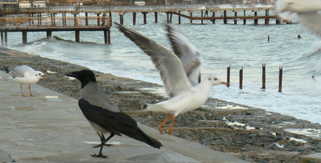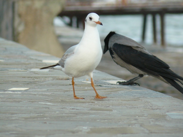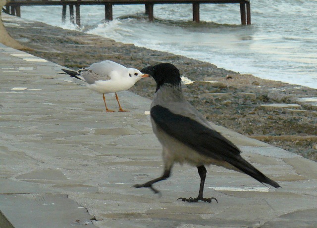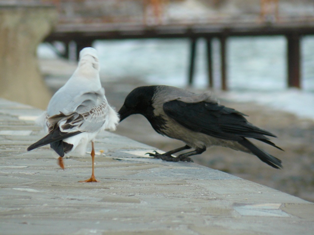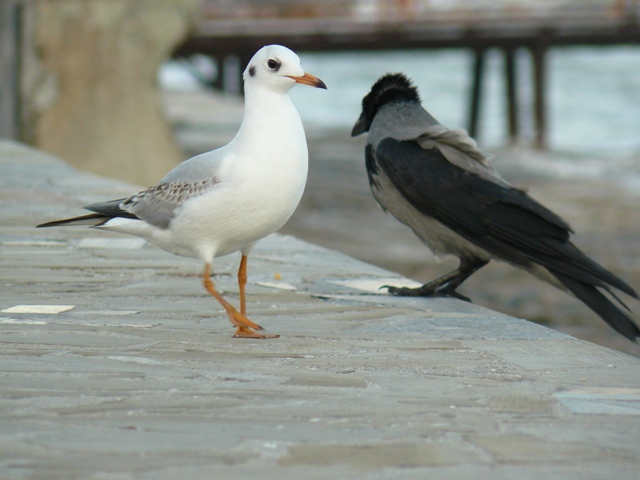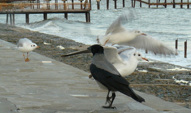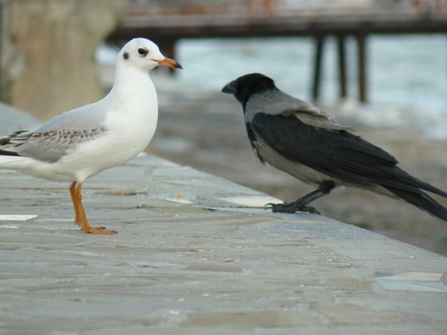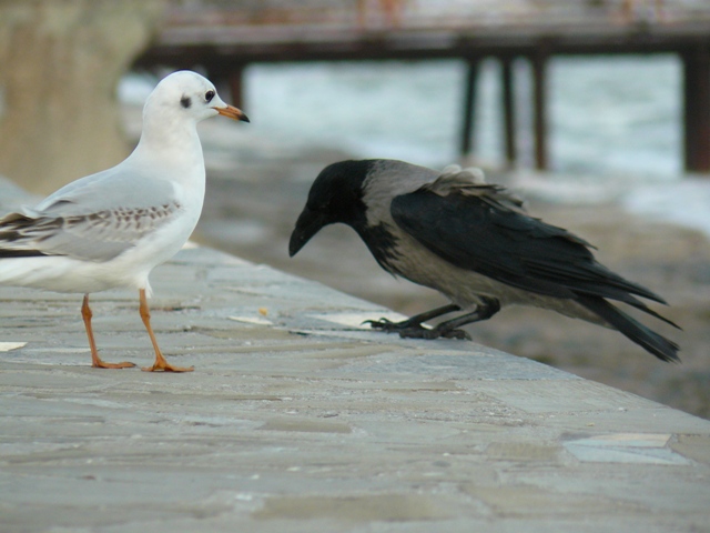Чайка и серая ворона Крым