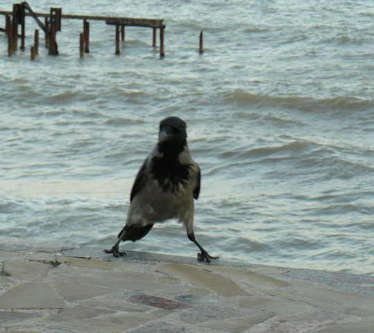 В Крыму в Евпатории на набережной имени Терешковой вместе с голодными чайками хлеб у евпаторийцев теперь выпрашивает и "ручная" серая ворона. Появление серой вороны среди чаек не осталось незамеченным жителями города. Покормить евпаторийскую достопримечательность на набережную теперь приходят не только любители природы, но и местные фотографы. Серая ворона уже пивыкла к фотографам. Во время очередной фотосессии она важно ходила между чайками, и смешно пританцовывая, клевала хлеб. Людей серая ворона совсем не боялась, а когда защелкал фотоаппарат, птица, подражая фотомоделям, показала себя во всей красе, делая танцевальные вороньи ПА. При штормовом ветре, ей удавалось даже демонстрировать стойку на одной ноге. Немногочисленные зрители, присутствовавшие при сольном выступлении серой вороны, утверждали, что она "ручная" и раньше проживала у кого-то из евпаторийцев в доме, а потом, покинув хозяев, прибилась к морским чайкам, с которыми живет в дружбе и не конфликтует. Местные жители прозвали смелую птицу "Евпаторийской вороной". Любители природы все 50 фотографий Евпаторийской серой вороны могут посмотреть ЗДЕСЬ.