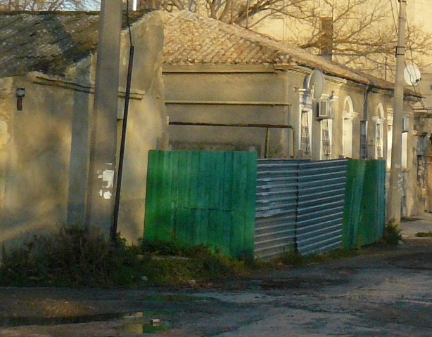 Все что осталось от исторического здания. Вид на мечеть Хан-Джами с переулка Типографский в Евпатории