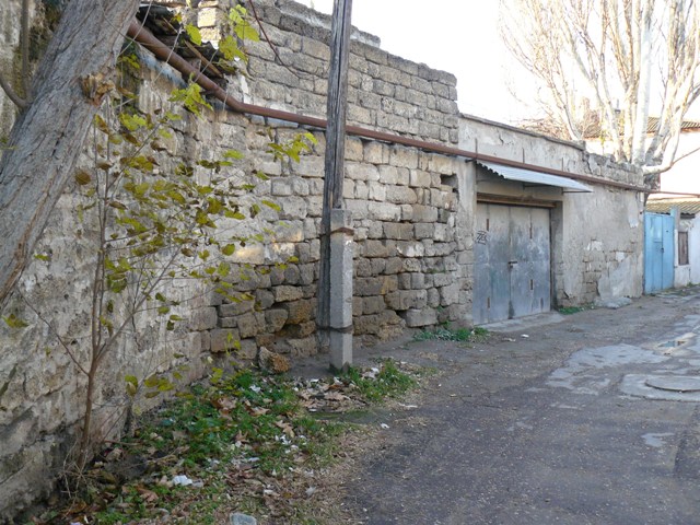 Остатки древней кладки в охранной зоне памятника Государственного значения мечети Хан - Джами. Типографский переулок. Евпатория.