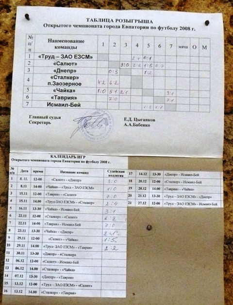 Но временами и на стадионе «Авангард» бывает праздник ФУТБОЛА. Такой, как сегодня, когда две футбольные команды выясняли, кто из них сильней. Вот только слухи ходят, что некие «крутые бизнесмены» при поддержке неких господ в погонах вознамерились продать евпаторийский стадион «Авангард», и тогда не будет уже в центре Евпатории стадиона, зато появятся у кого-то в кармане деньги, очень большие деньги. Так это или нет, «Крымский папарацци» так и не узнал во время этого футбольного матча. Да и некогда ему было забивать свою голову всякой ерундой. Он беспрерывно щелкал фотоаппаратом, чтобы запечатлеть евпаторийских футболистов на развалинах евпаторийского стадиона «Авангард». Марк Агатов 30 ноября 2008 года