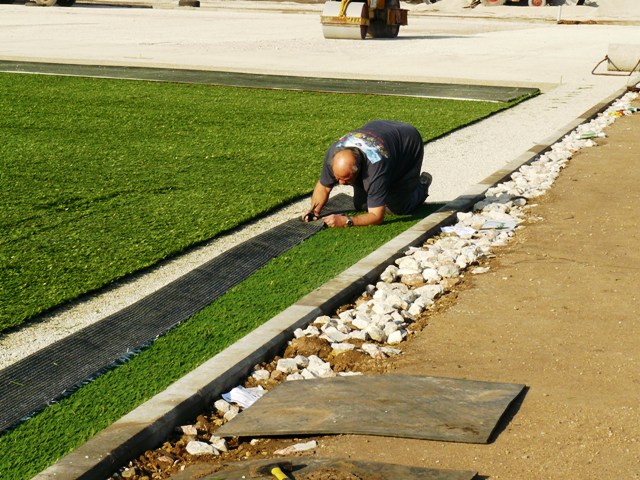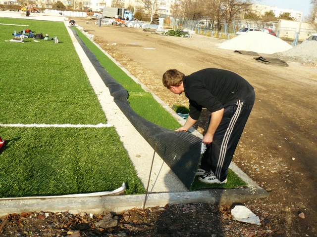 В Крыму в Евпатории на стадионе евпаторийского Дворца спорта наполовину позеленело футбольное поле. Бригада монтажников из фирмы – подрядчика «Контрактстрой» начала укладку искусственного газона на футбольное поле евпаторийского Дворца спорта. Начальник управления по физической культуре и спорту Евпаторийского городского совета Вячеслав Потас сообщил «Крымскому аналитику» о том, что все работы по установке искусственного покрытия на футбольном поле будут завершены в конце декабря 2008 года и уже в начале января здесь пройдет первый футбольный турнир, посвященный памяти заслуженного тренера Украины Олега Великородного. Сама же реконструкция стадиона будет продолжена. Городские власти намереваются возвести на стадионе еще одну трибуну для зрителей и создать здесь все необходимые условия для тренировок и проведения футбольных матчей. По словам Вячеслава Потаса, к новому футбольному полю в Евпатории уже проявляют интерес тренеры команд мастеров. Они намереваются проводить здесь весенние сборы. А летом на евпаторийском стадионе планируют проводить не только спортивные состязания, но и концерты эстрадных звезд.