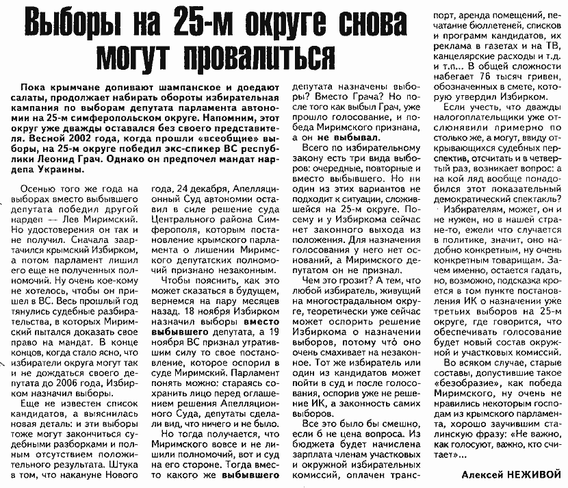 "Крымское время" 6 января 2003г.