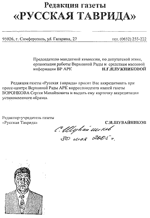 — новый глава. "Крымское время" N 29, 17 марта 2005 г.